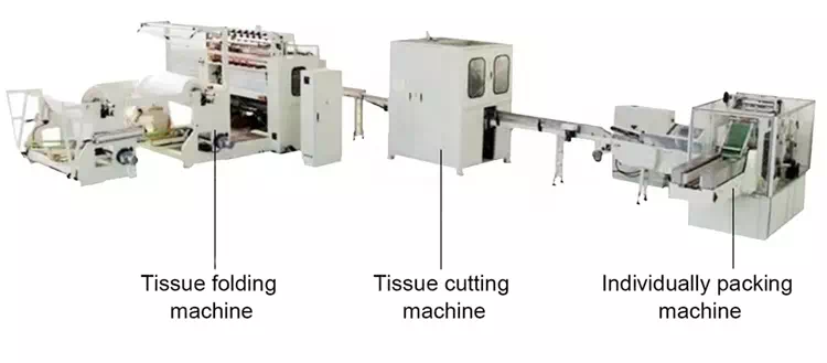 Tissue cutting machine: Single channel log saw or two lines for optional, cutting the folded non-woven fabric into finished products, to make sure neat and elegant enough before packing.